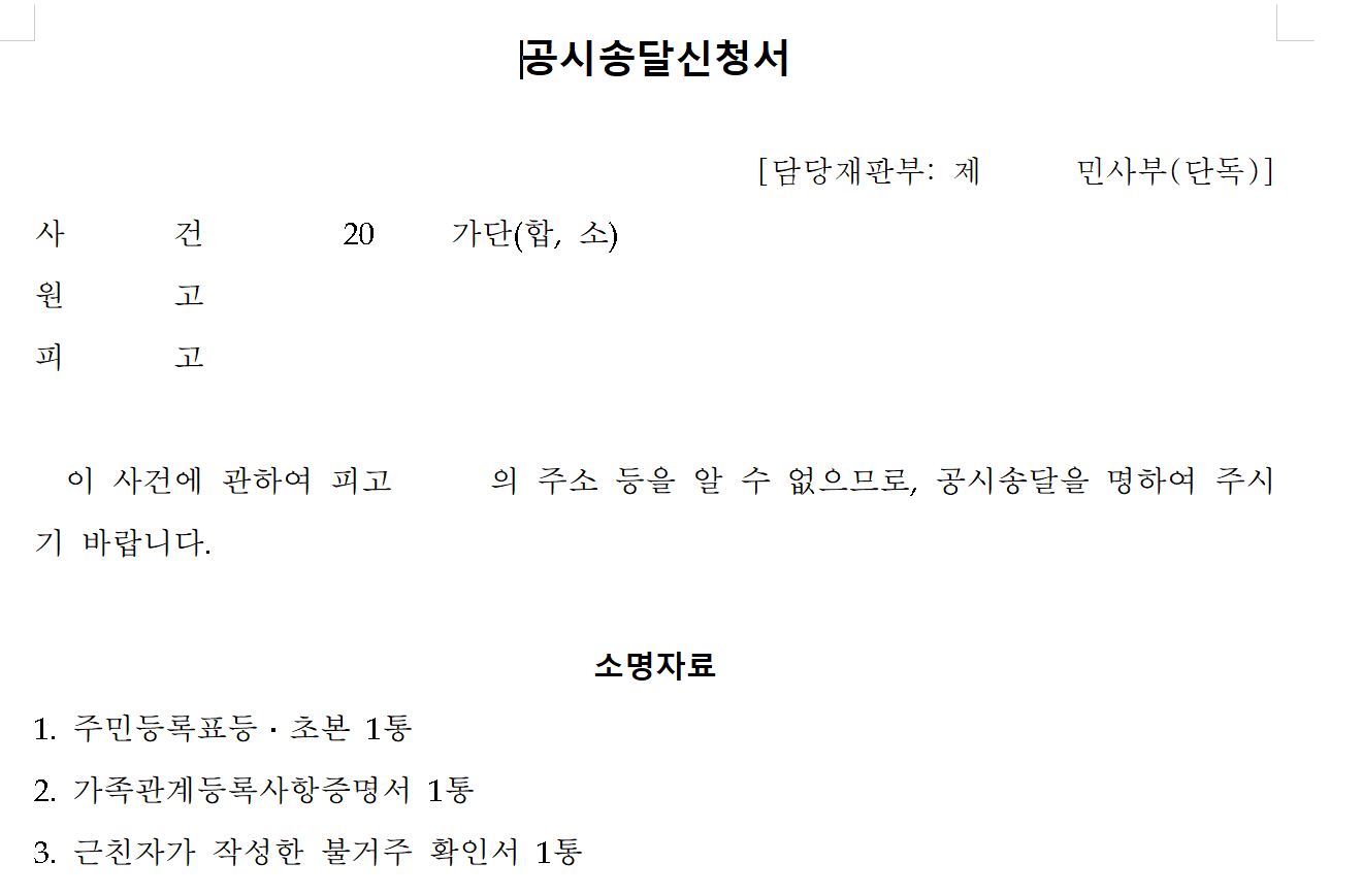* 공시송달 양식이 궁금하시다면 대법원에서 배포한 공시송달 양식에서 확인할 수 있습니다.