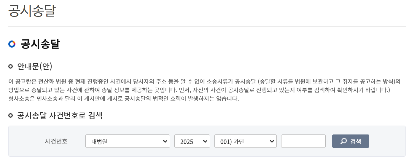2. 법원 공시송달 공고 확인