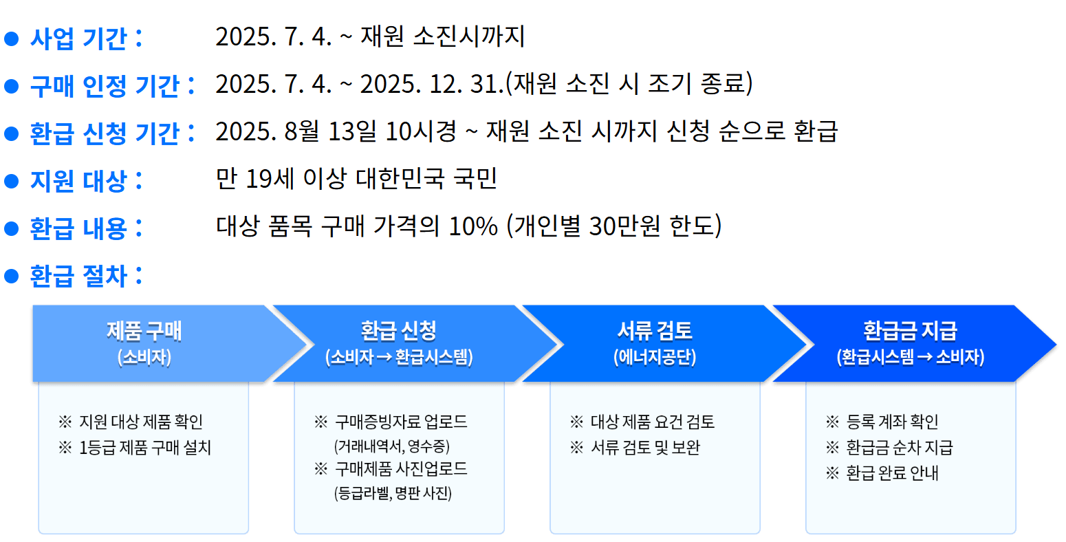 - 사업 시행 기간: 2025년 7월 4일 이후 구매한 제품부터 소급 적용됩니다.