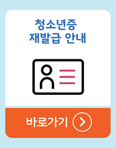 - 온라인 재발급: 청소년증 발급 사이트를 통해 재발급 신청을 합니다.