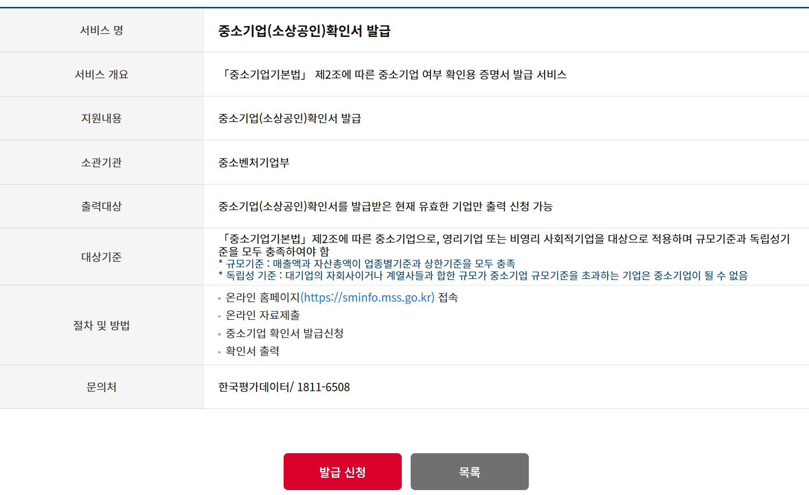 발급 주체: 중소벤처기업부 및 각 지역 지방중소벤처기업청, 중소기업 통합 포털(sbiz.or.kr)에서 발급 가능합니다.