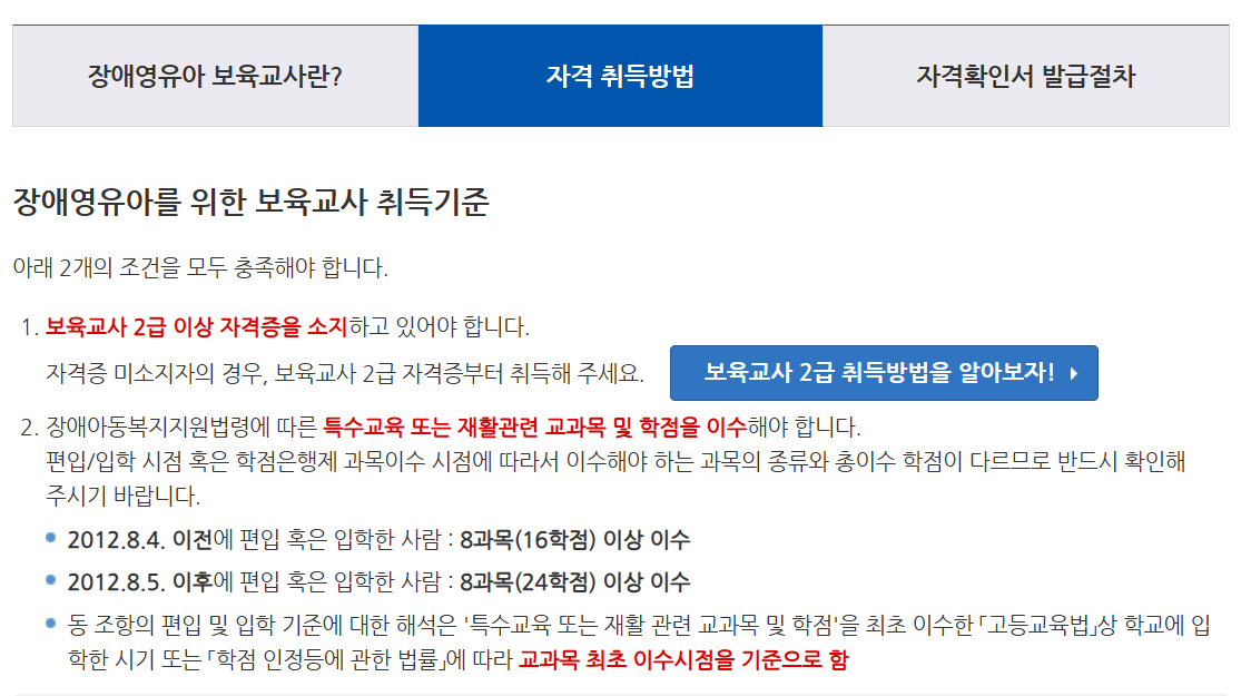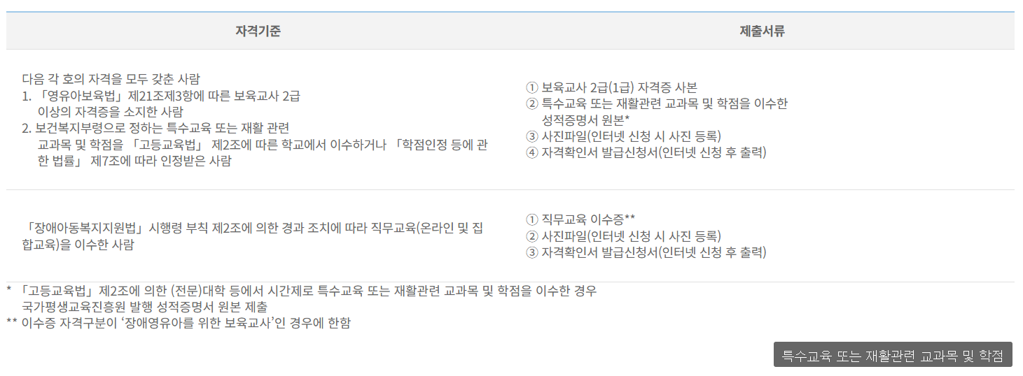 장애영유아 보육교사 자격증 취득 요건