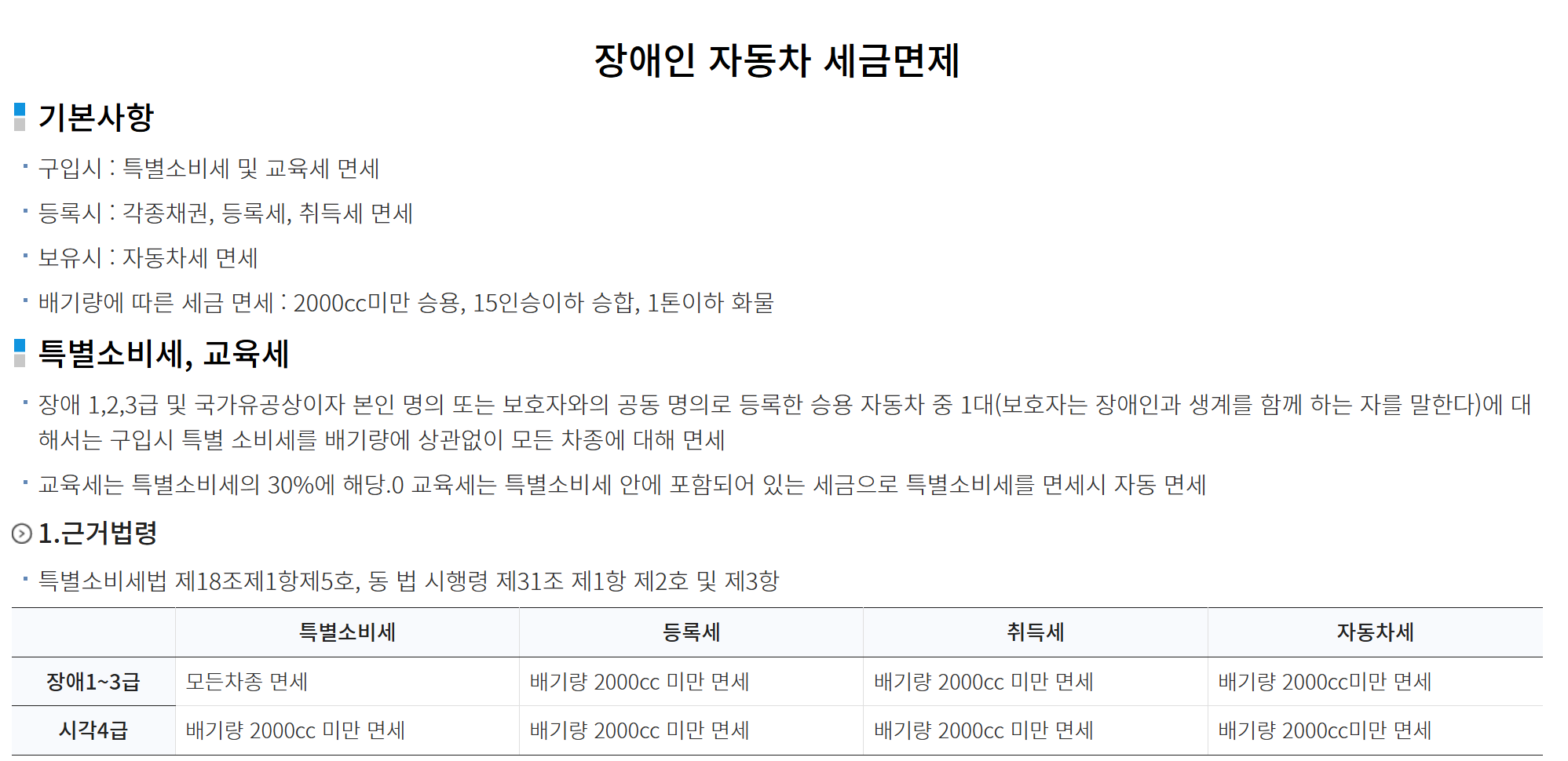 장애인 차량구입시 혜택: 세금감면