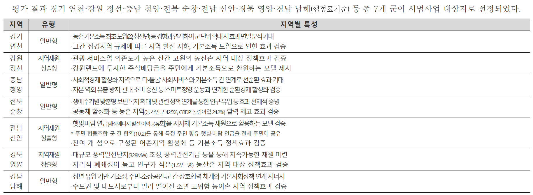 농어촌 기본소득 시범지역