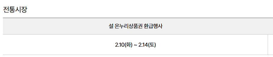 2026년 설 연휴 전통시장 온누리상품권 환급행사는 일반적으로 설 연휴 약 1~2주 전부터 설 당일까지 운영됩니다.