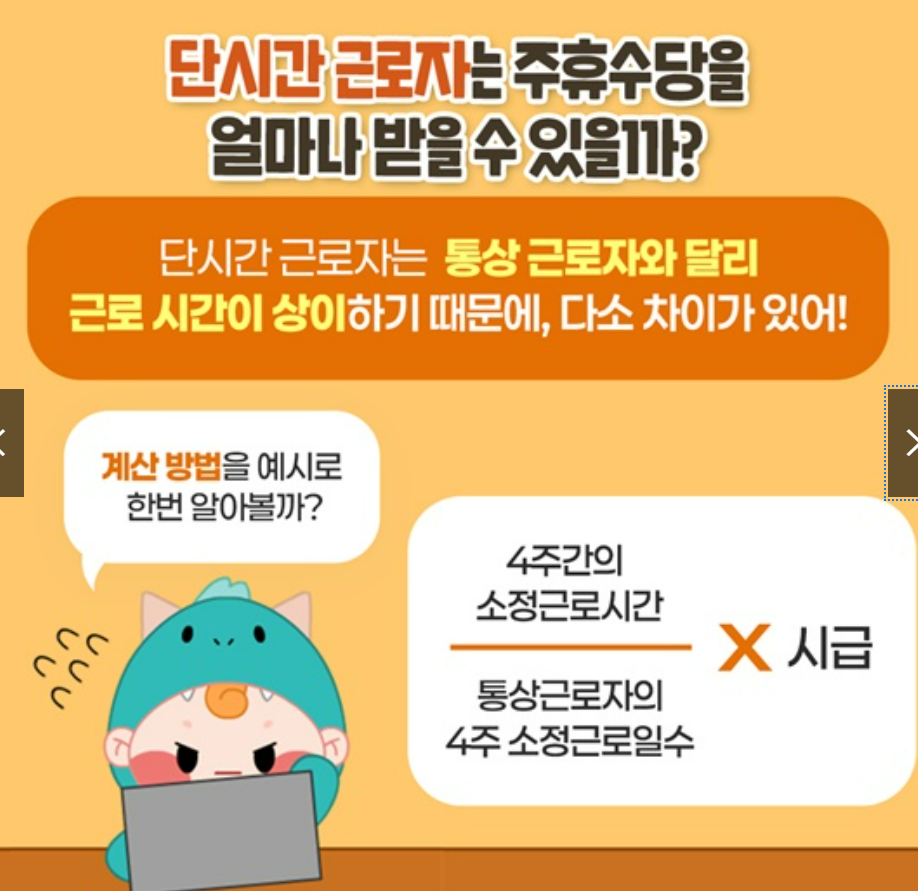 1주일 동안 성실히 근무한 대가로 ‘쉬는 날에도 받는 하루치 급여’는 단시간 근로자에게는 매우 큰 의미가 있습니다.