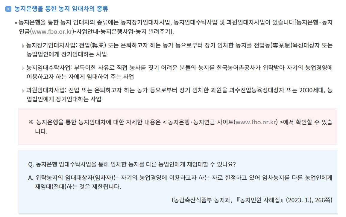 * 생활법령정보 사이트에서 농지 임대차 관련 주요 질의응답을 확인하실 수 있습니다.