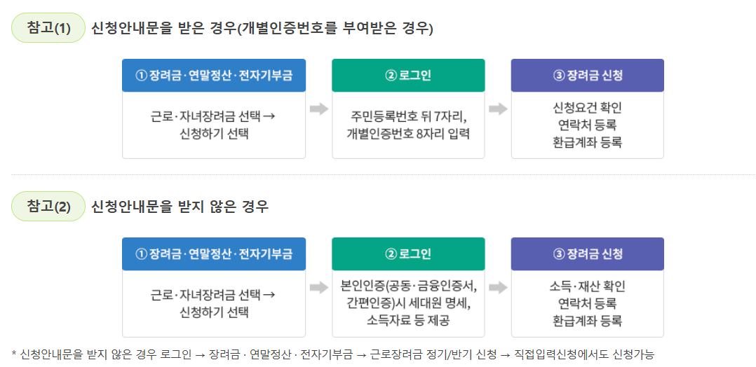 - 로그인 후 '근로·자녀장려금 신청' 메뉴를 선택합니다.
