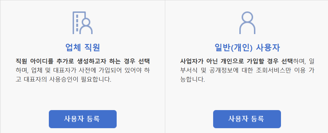 💰사용자 등록 페이지 이동: 홈페이지 상단 메뉴에서 '사용자등록'을 선택합니다.