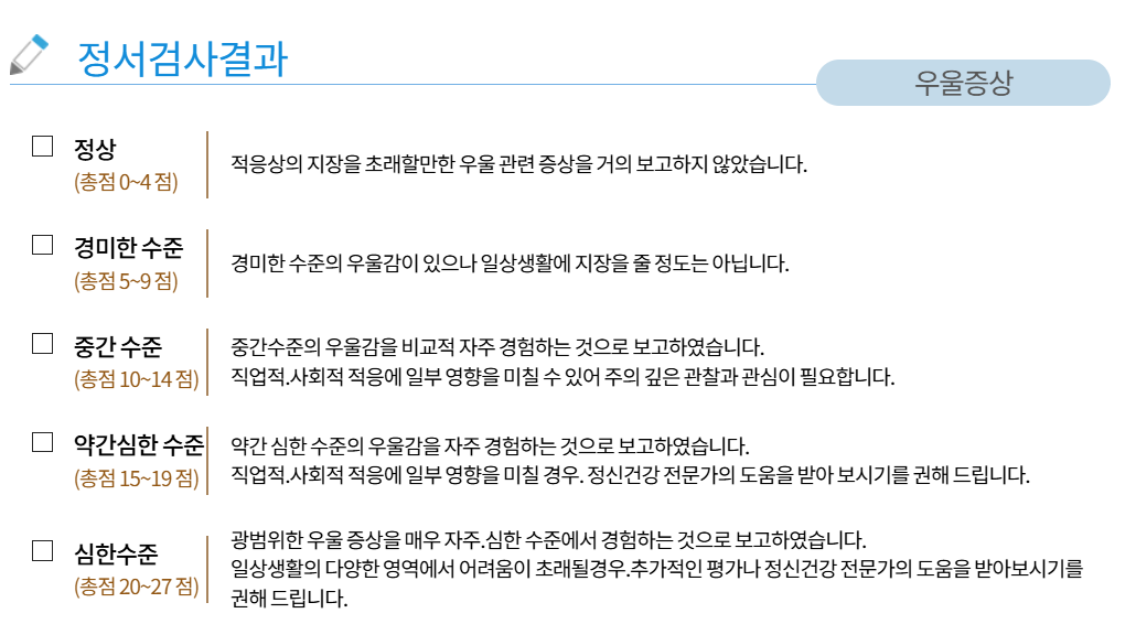 결과가 높게 나왔다고 해서 반드시 우울증이라는 건 아닙니다.