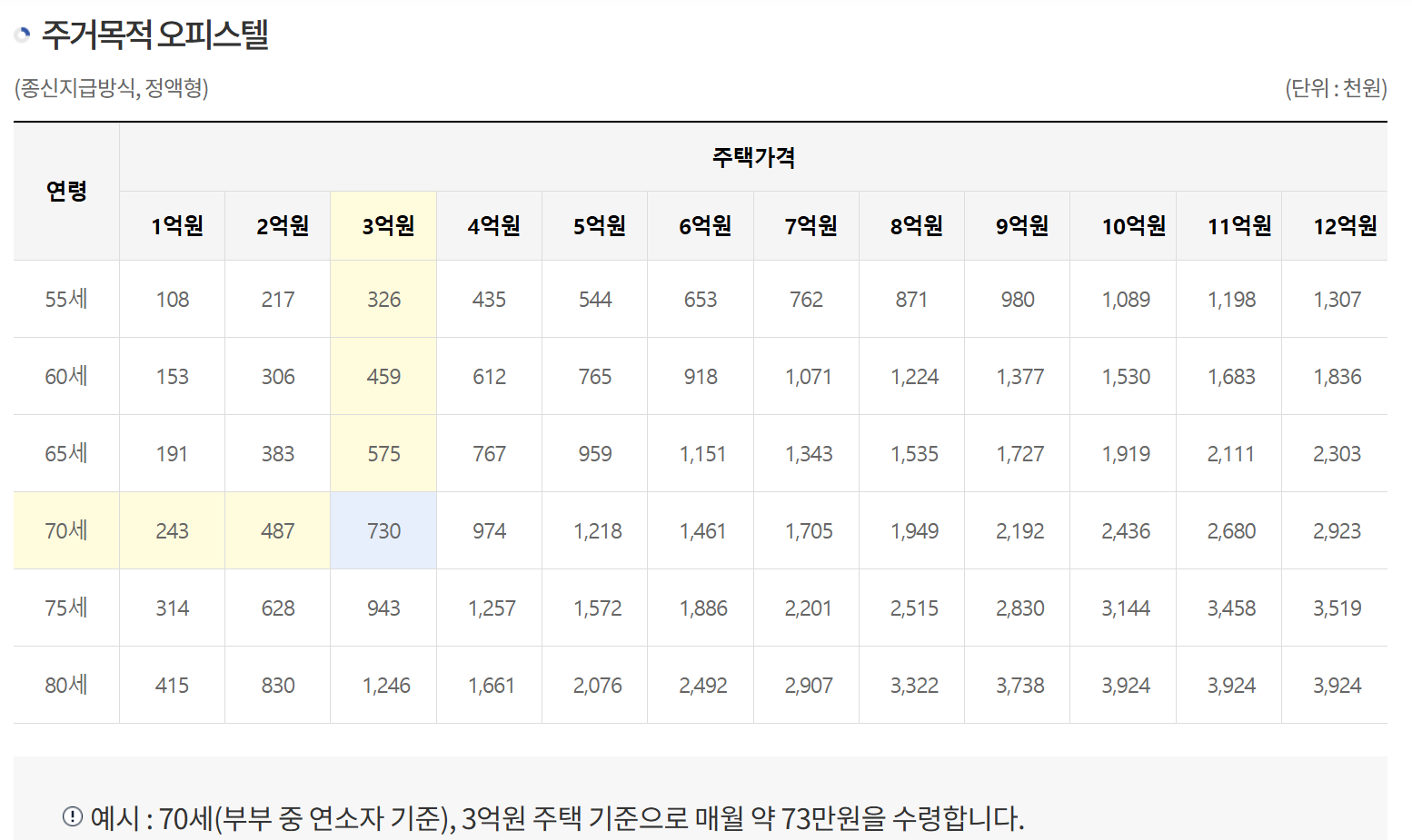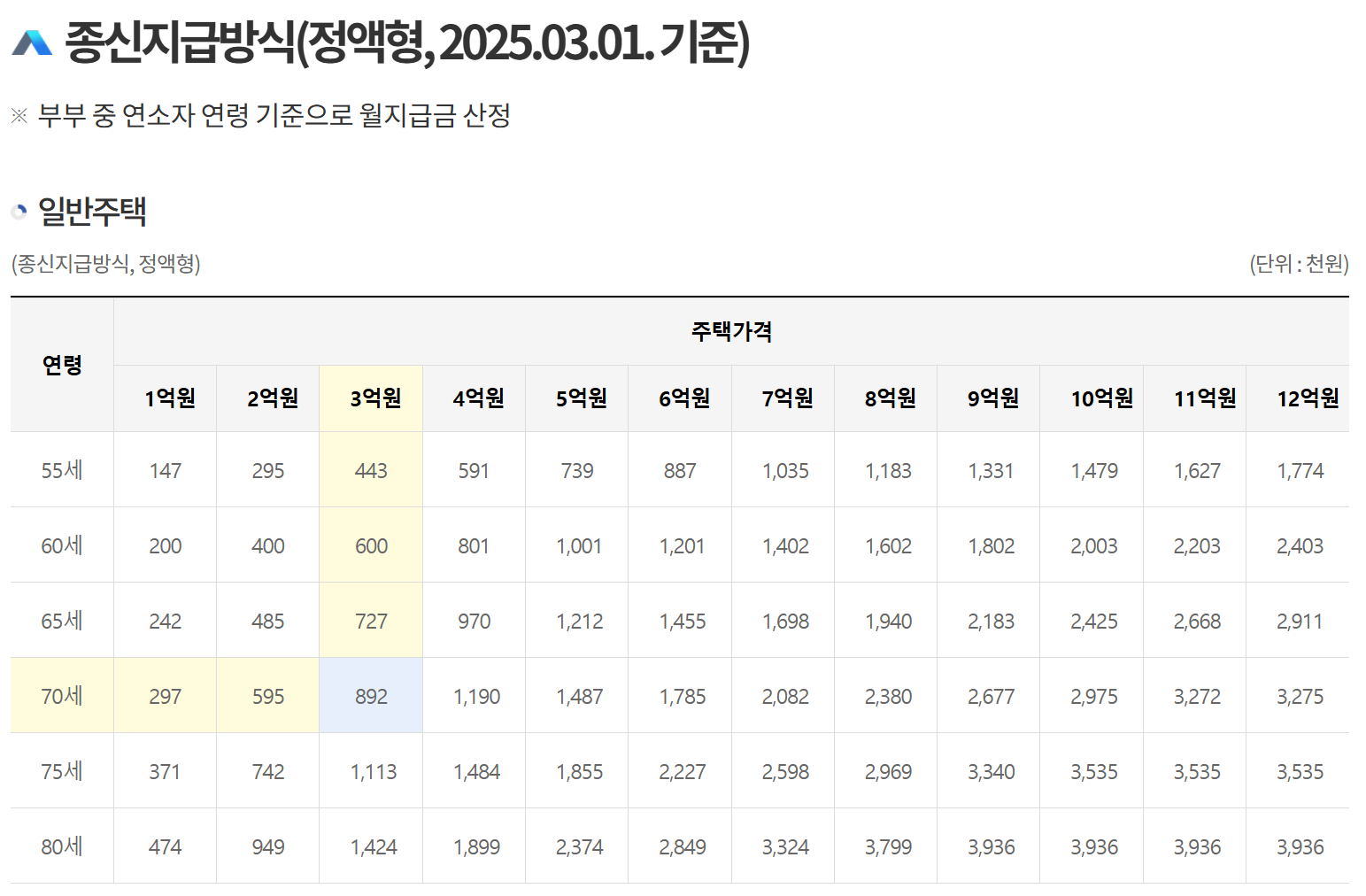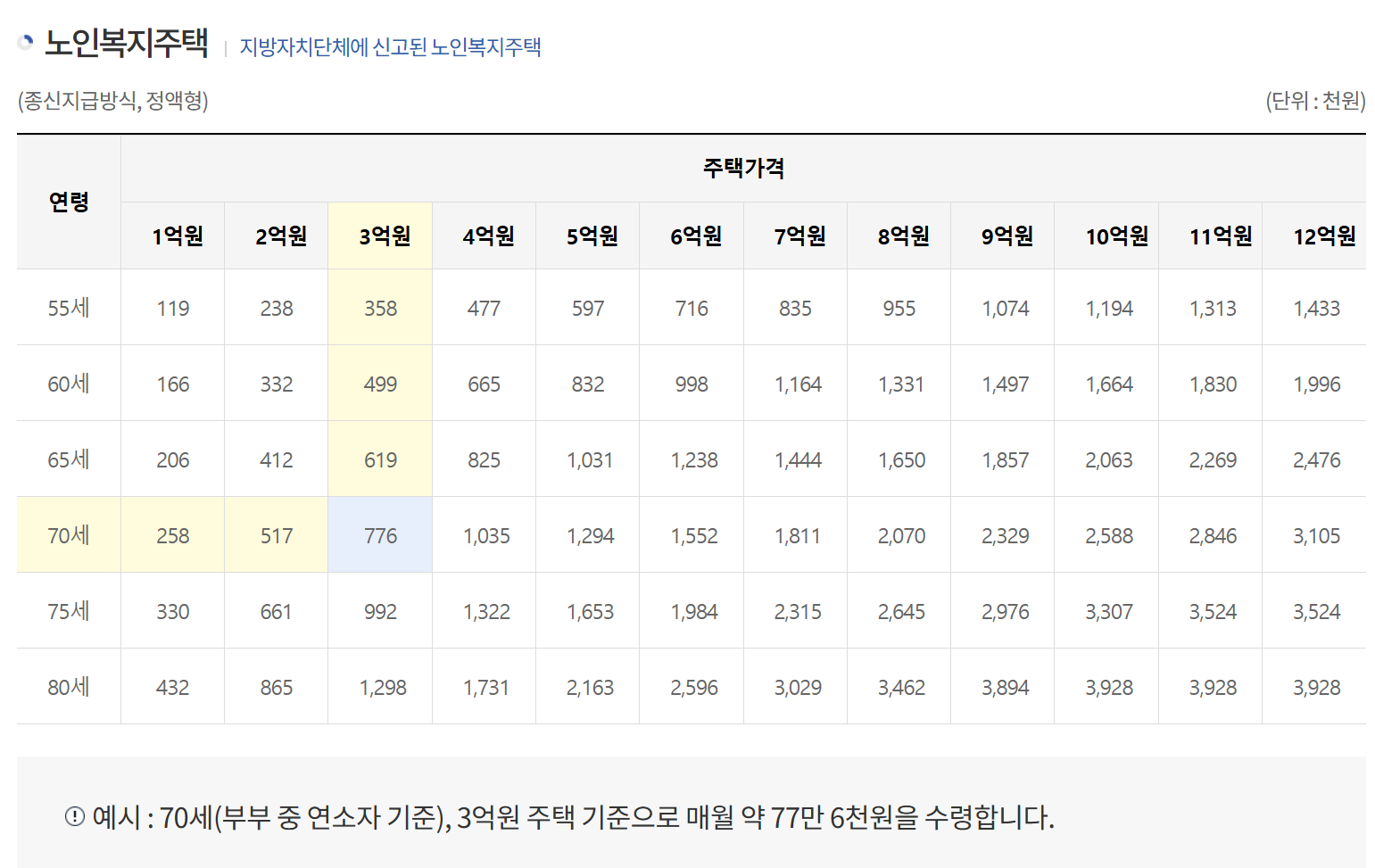 70세 어르신이 시가 4억 원짜리 아파트에 살고 있고, 정액형을 선택할 경우