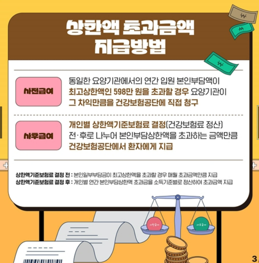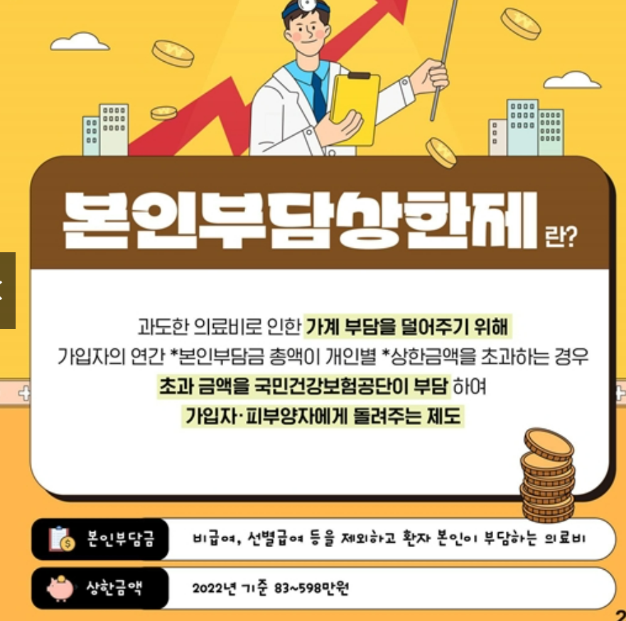 즉, 일정 수준 이상으로 병원비를 낸 경우에는 그 초과 금액을 건강공단이 돌려준다는 뜻입니다.