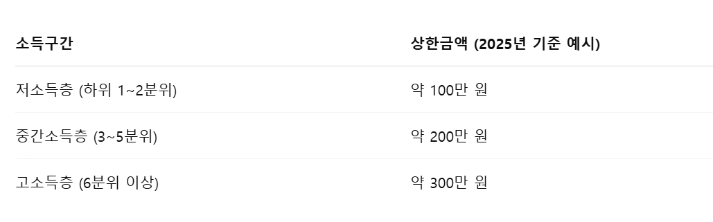 - 단, 상한액 산정 기준은 소득 수준에 따라 다르게 설정