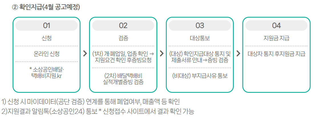 특히 소상공인 배달 택배비 지원 사업의 확인지급 대상자는 이번에 새롭게 기회를 얻게 된 만큼, 예전 지원 신청에서 누락되었다고 포기하셨던 분들께도 좋은 기회가 될 것입니다.