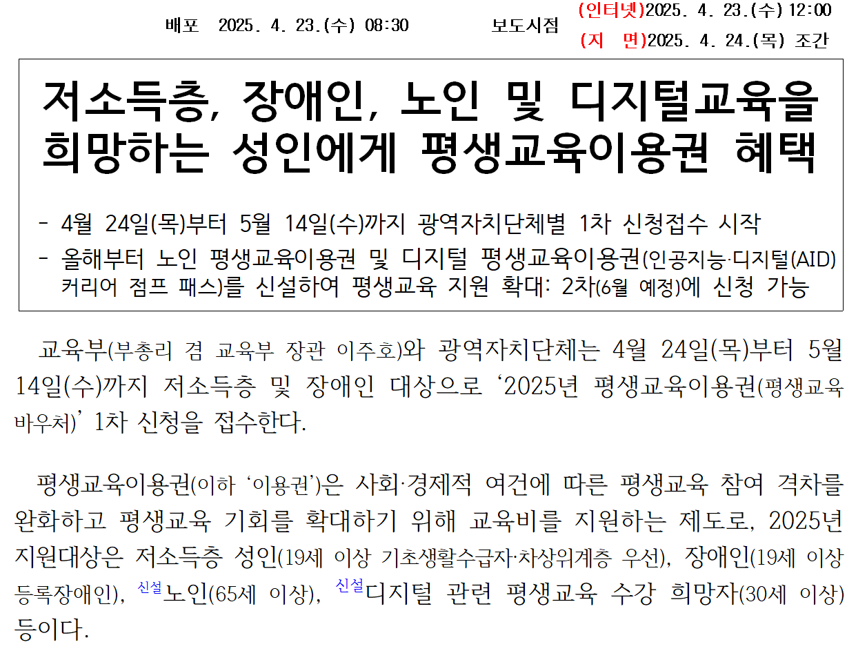 2025년에도 어김없이 ‘평생교육 바우’ 사업이 시작됩니다. 교육부와 전국 광역자치단체는 2025년 4월 24일부터 5월 14일까지 약 3주간 1차 신청을 받습니다. 오늘은 평생교육 바우처의 취지와 함께 신청 대상, 자격 요건, 신청 및 사용 방법 등을 상세히 알려드리겠습니다.