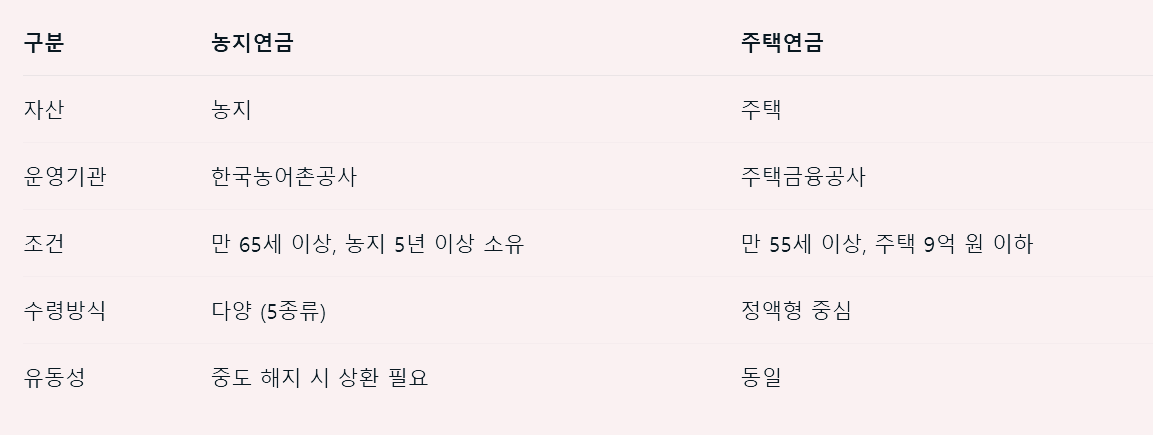 지금까지 농지연금 가입조건 및 신청방법에 대해 알아보았습니다. 이제 농지연금과 주택연금이 어떻게 다른지 비교해보겠습니다.