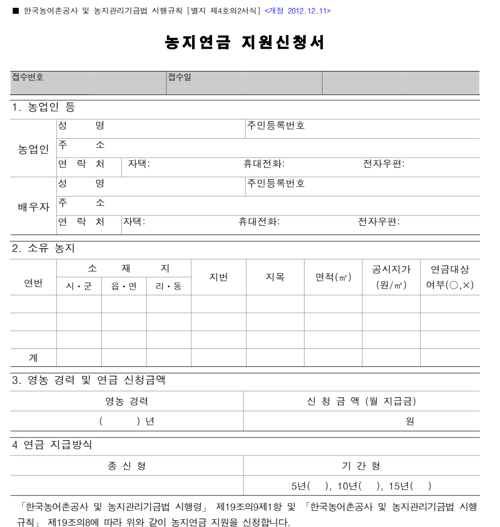 - 최근 1년 이상 본인이 직접 경작한 이력이 있어야 함