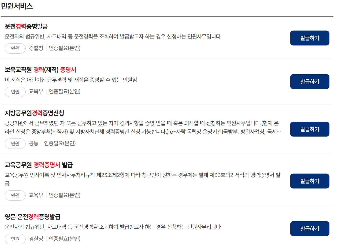6. 정부24에서 공공기관 근무경력증명서 발급 받는 방법