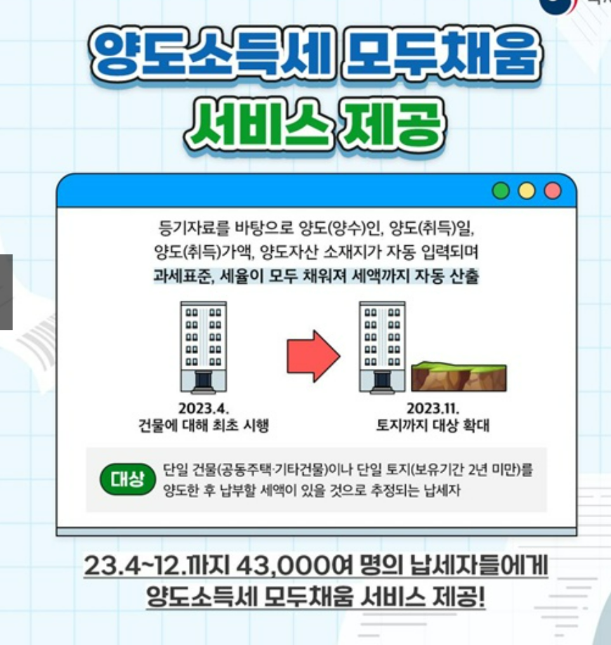 말 그대로 ‘모두 채워진’ 신고서를 제공하여 납세자가 별도의 복잡한 계산이나 신고 절차 없이 손쉽게 신고할 수 있도록 도와주는 서비스입니다.