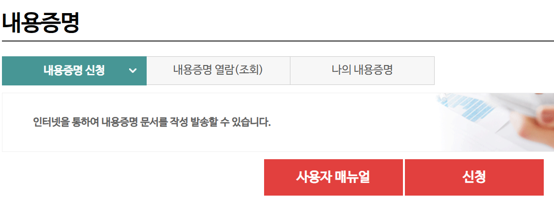 - [우편서비스 → 내용증명] 메뉴 선택