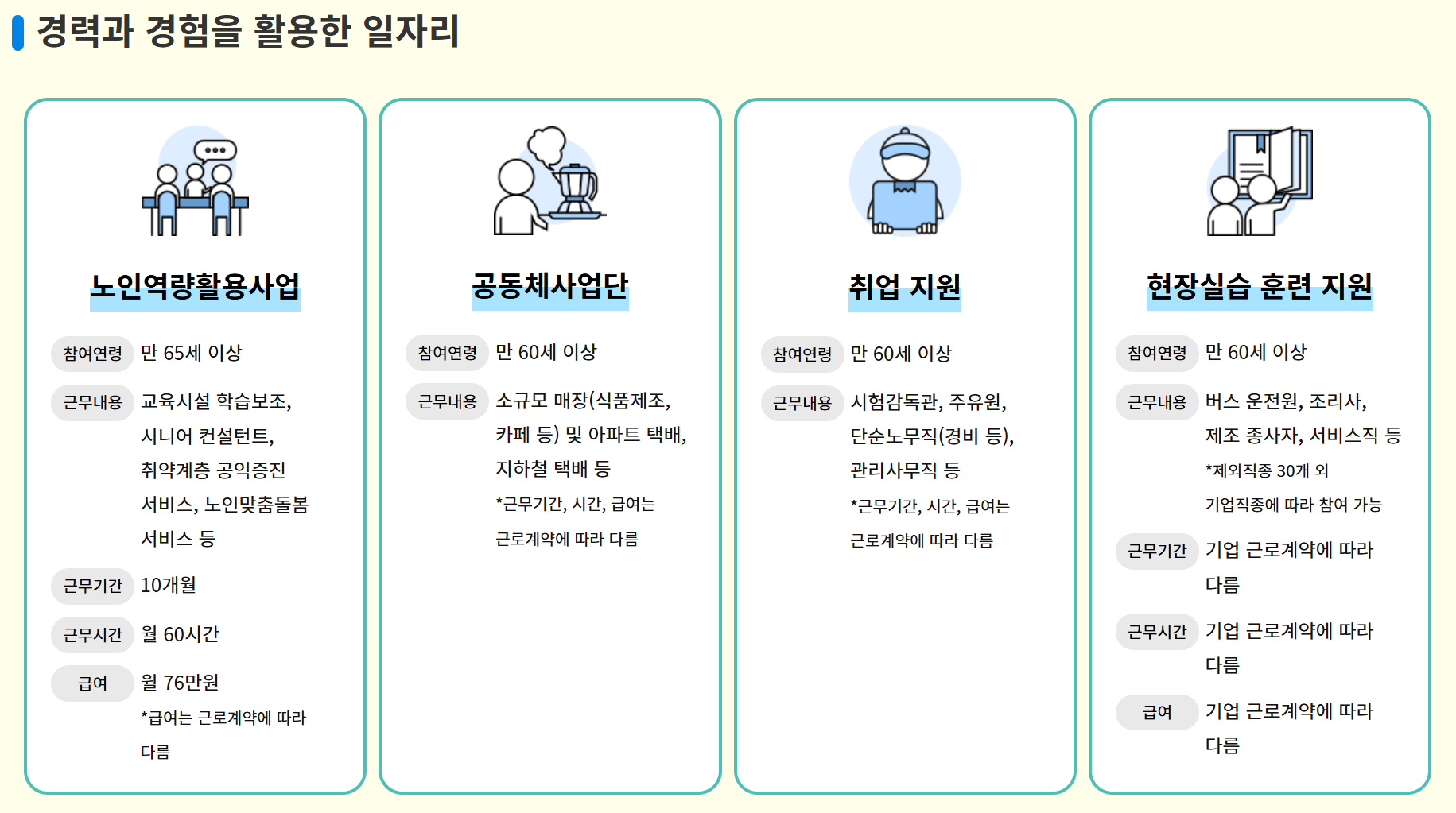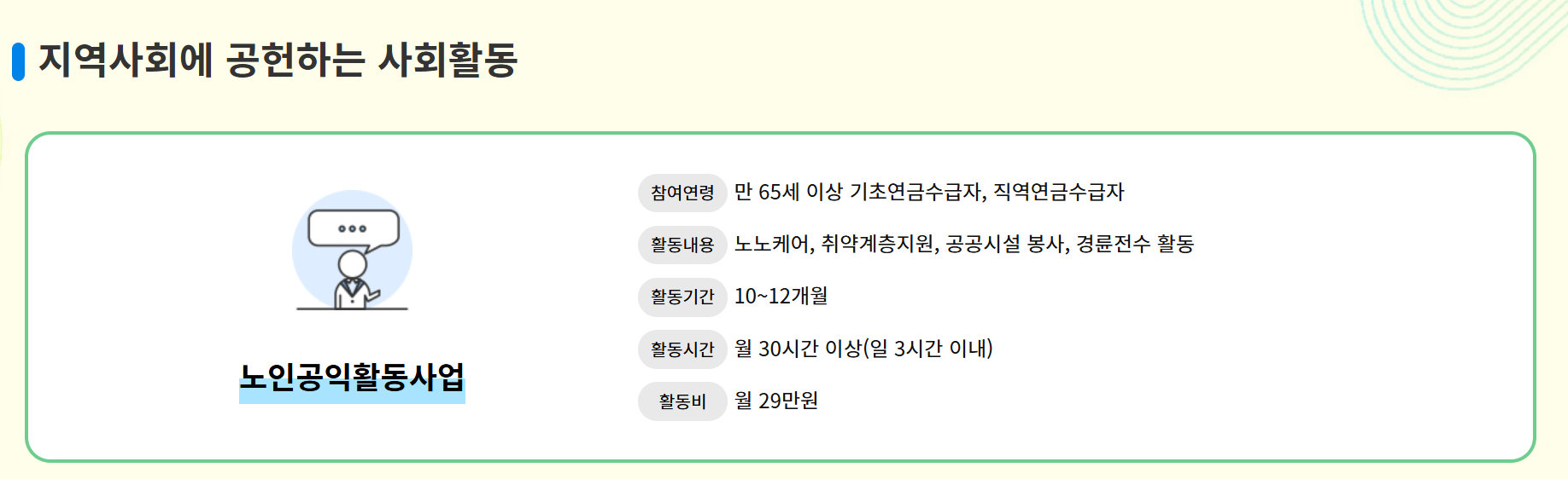 - 공익활동형: 만 65세 이상 기초연금 수급자
