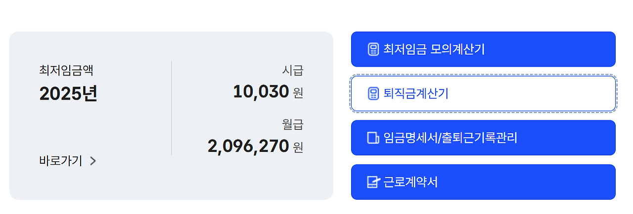 * 고용노동부 퇴직금계산기는 고용노동부 홈페이지 - 하단 퇴직금계산기에서 확인할 수 있습니다.