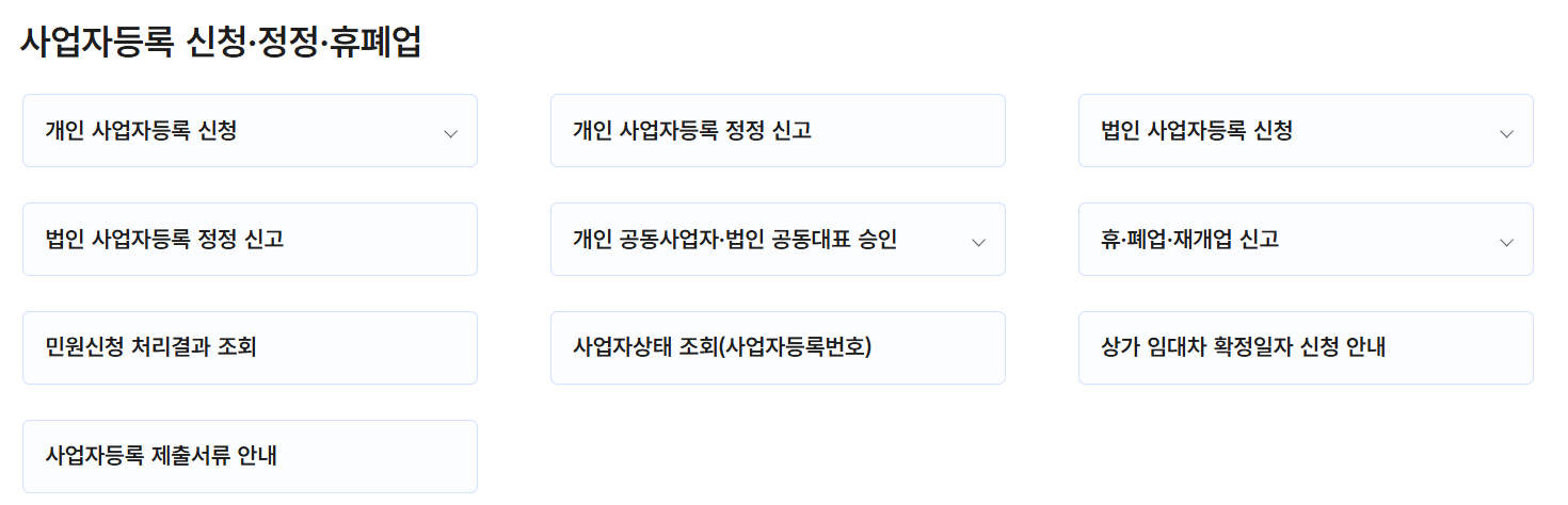 | 1 | 사업자등록신청서 | ✅ | ✅ |