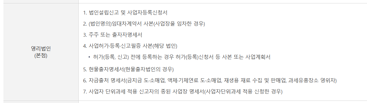 법인사업자 사업자등록증 발급시 필요서류