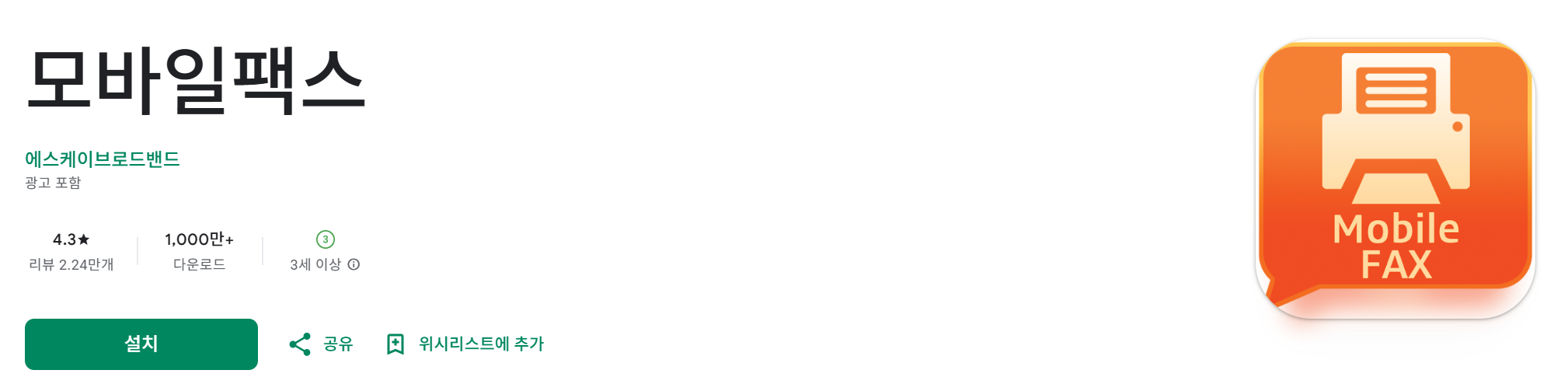 - 설치 방법: 구글플레이스토어나 앱스토어에서 '모바일팩스' 검색 → 설치