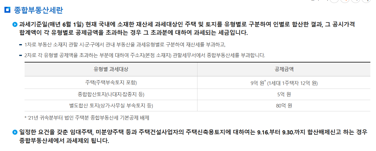 🏠 종합부동산세 과세대상 요약